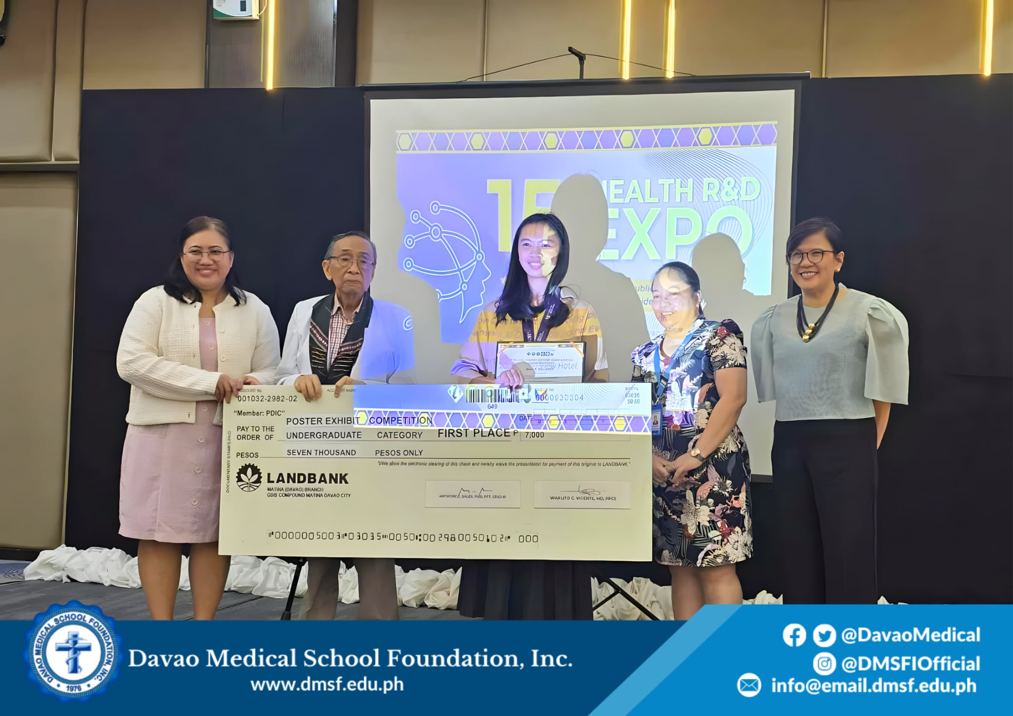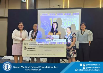 The Davao Medical School Foundation, Inc. (DMSFI) proudly congratulates the College of Nursing for winning First Place in the 15th Health Research and Development (R&D) Expo held on October 1–2, 2025, at the Apo View Hotel, Davao City.